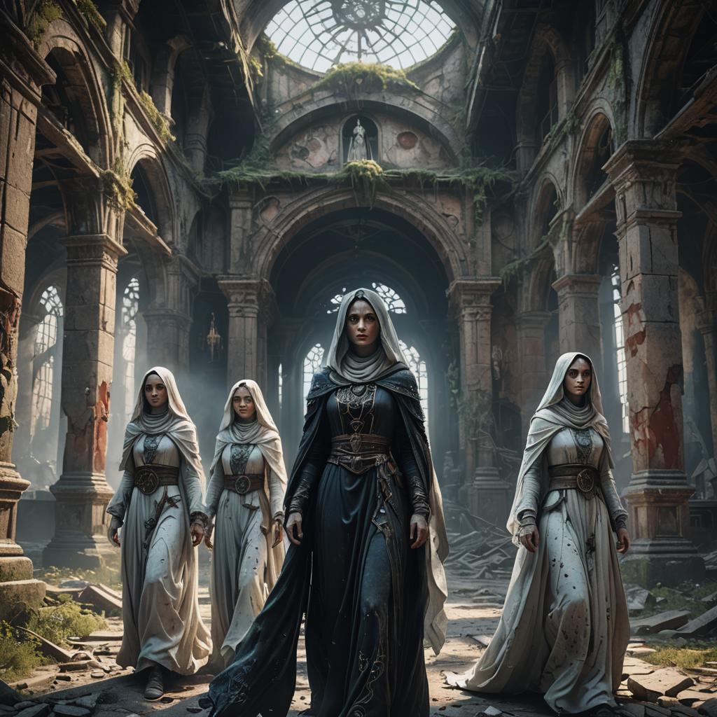 Three beautiful female ghosts in abandoned monastery.jpg