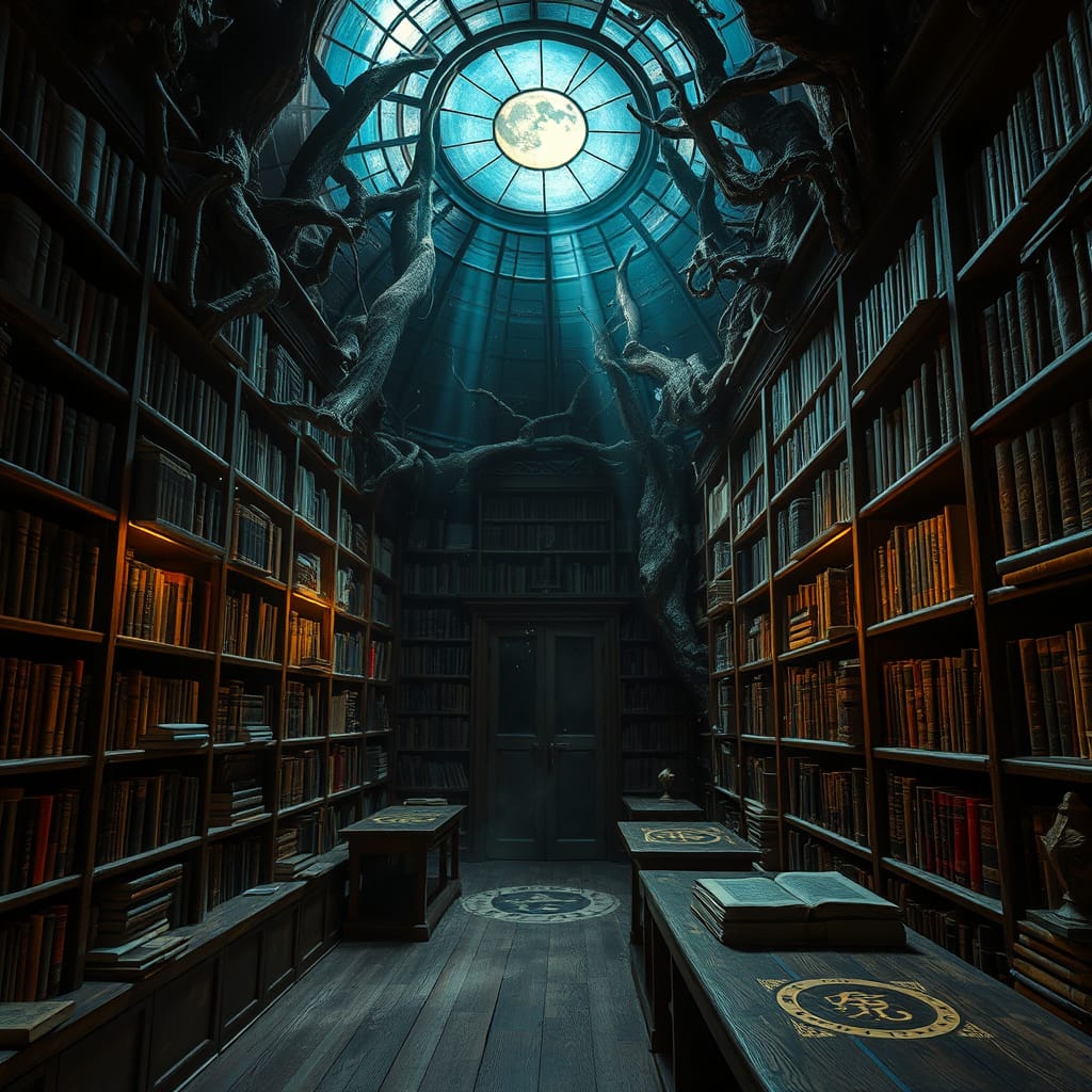 A clandestine library, where the shelves are made of living trees.jpg
