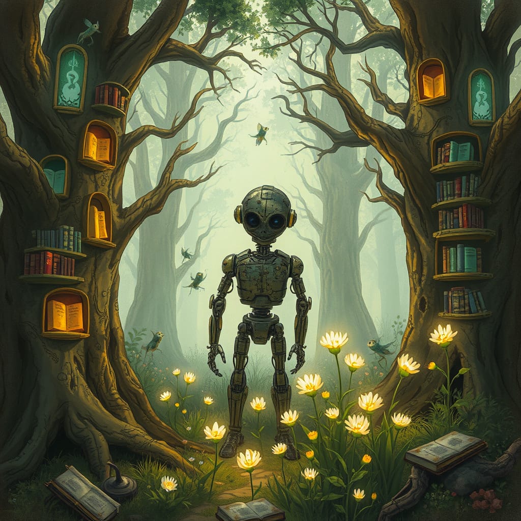 A solitary, ancient automaton stands amidst the ruins.jpg