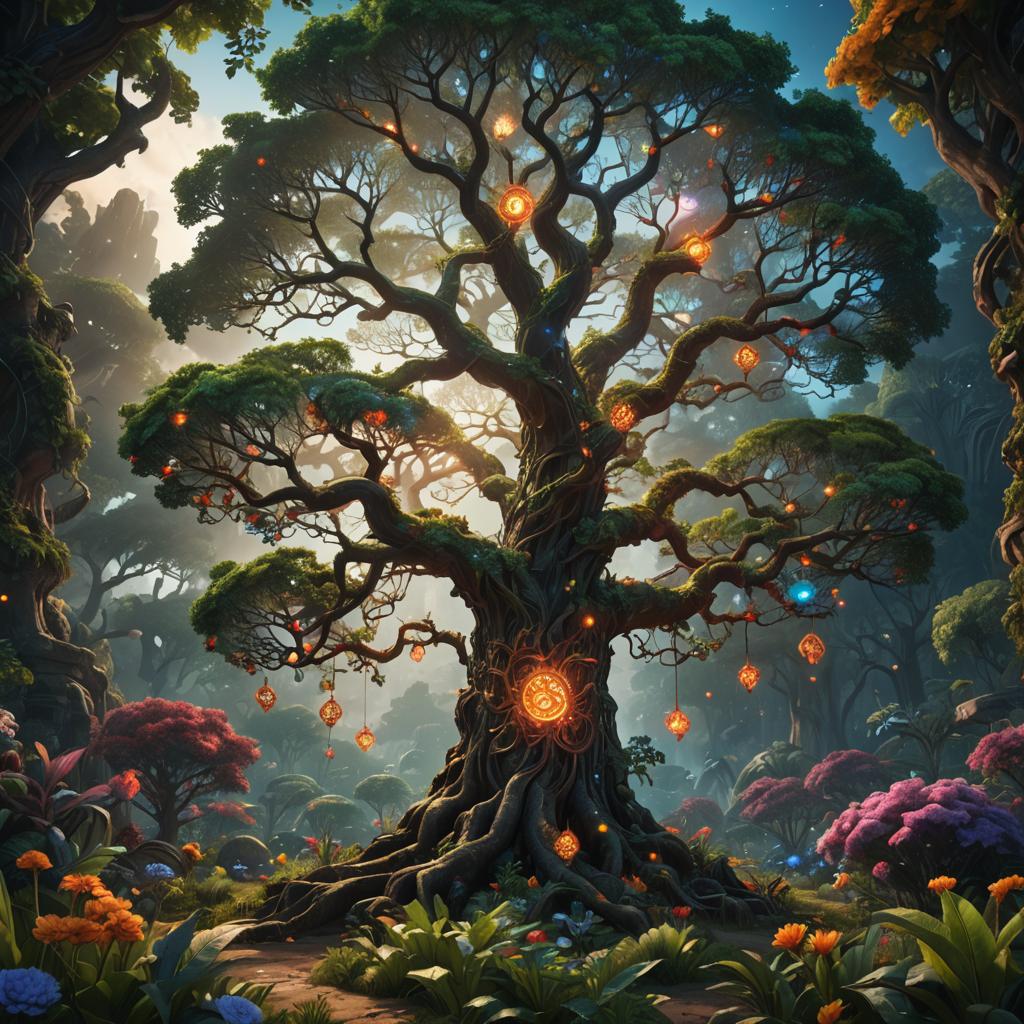 Glowing Tree of Life in the Garden of Eden