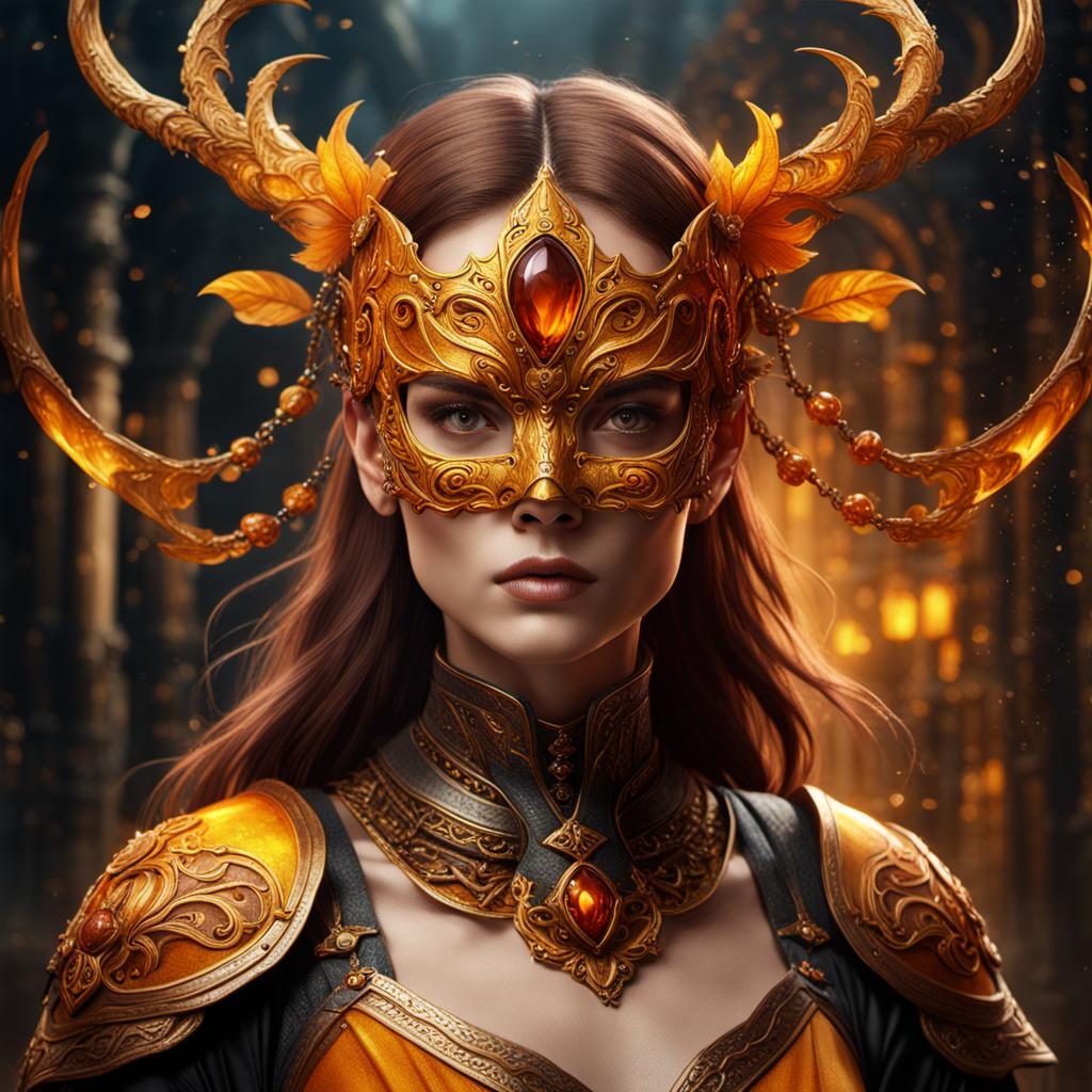 Beautiful woman in amber mask
