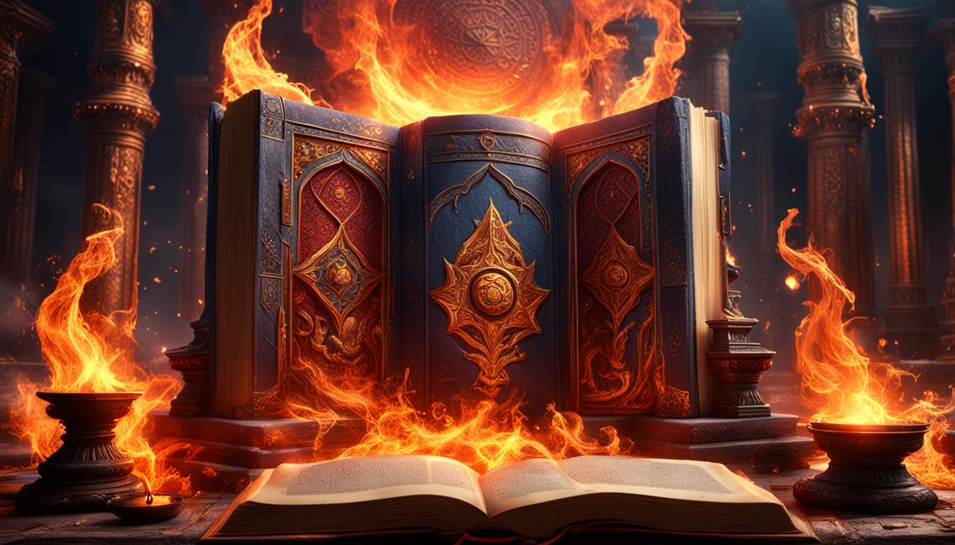 Giant fiery magical book on the altar of a temple - JXL.jpg