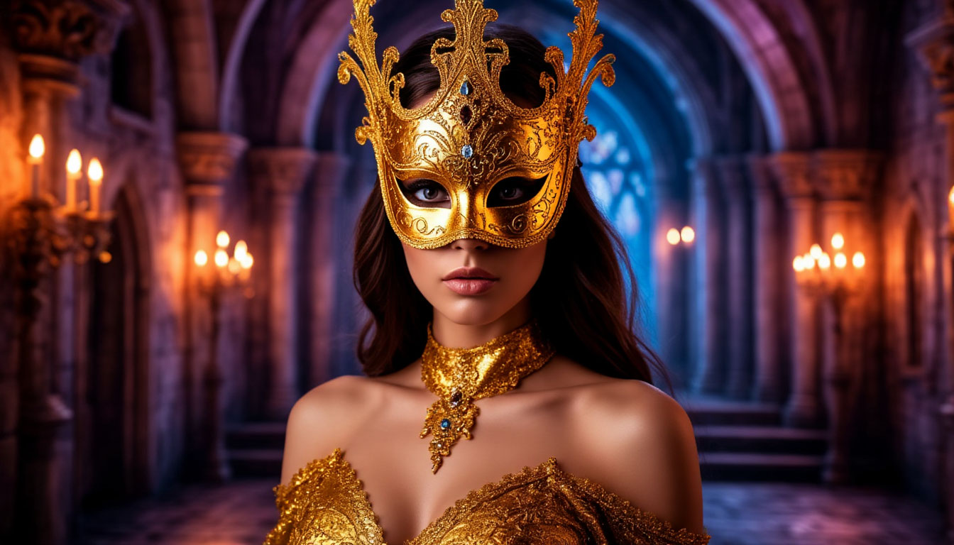 Beautiful woman in golden mask inside a magical castle - PL1.png
