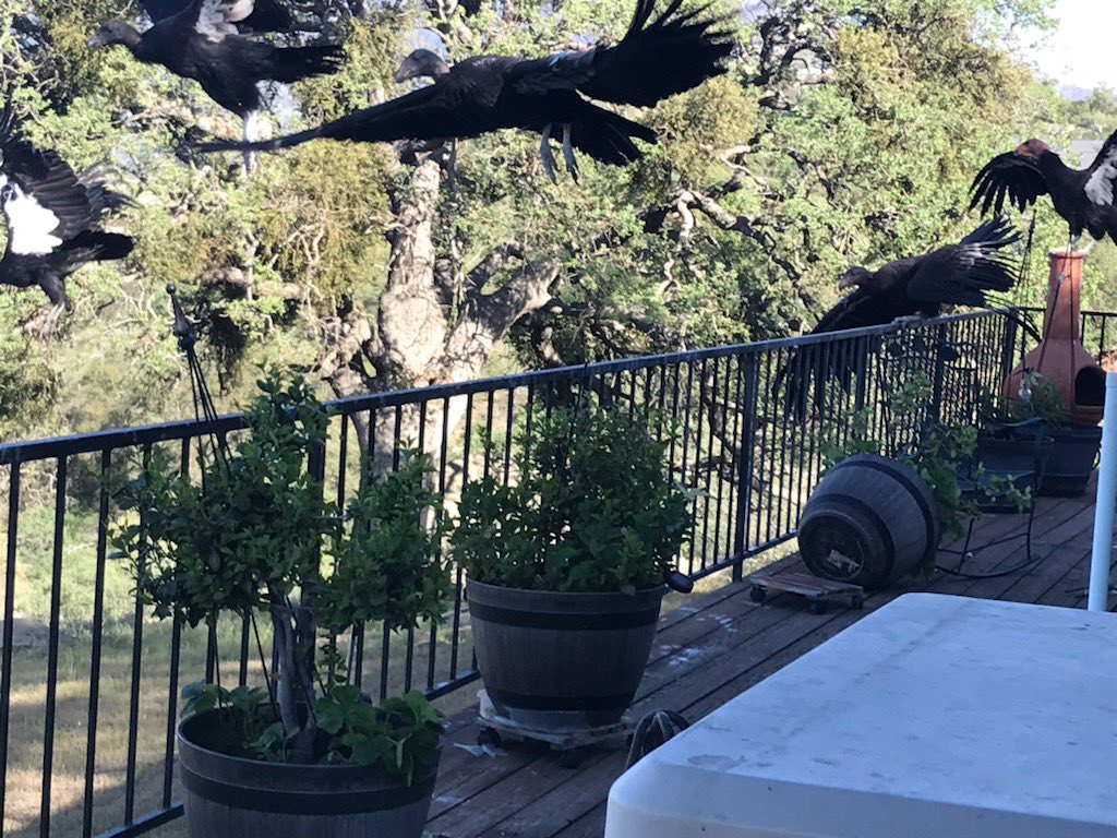12 штук этих кондоров, пронумерованые и охраняемые законом, уже неделю живут на домике калифорнийской бабули божий одуванчик и перегадили ей там всю веранду.
