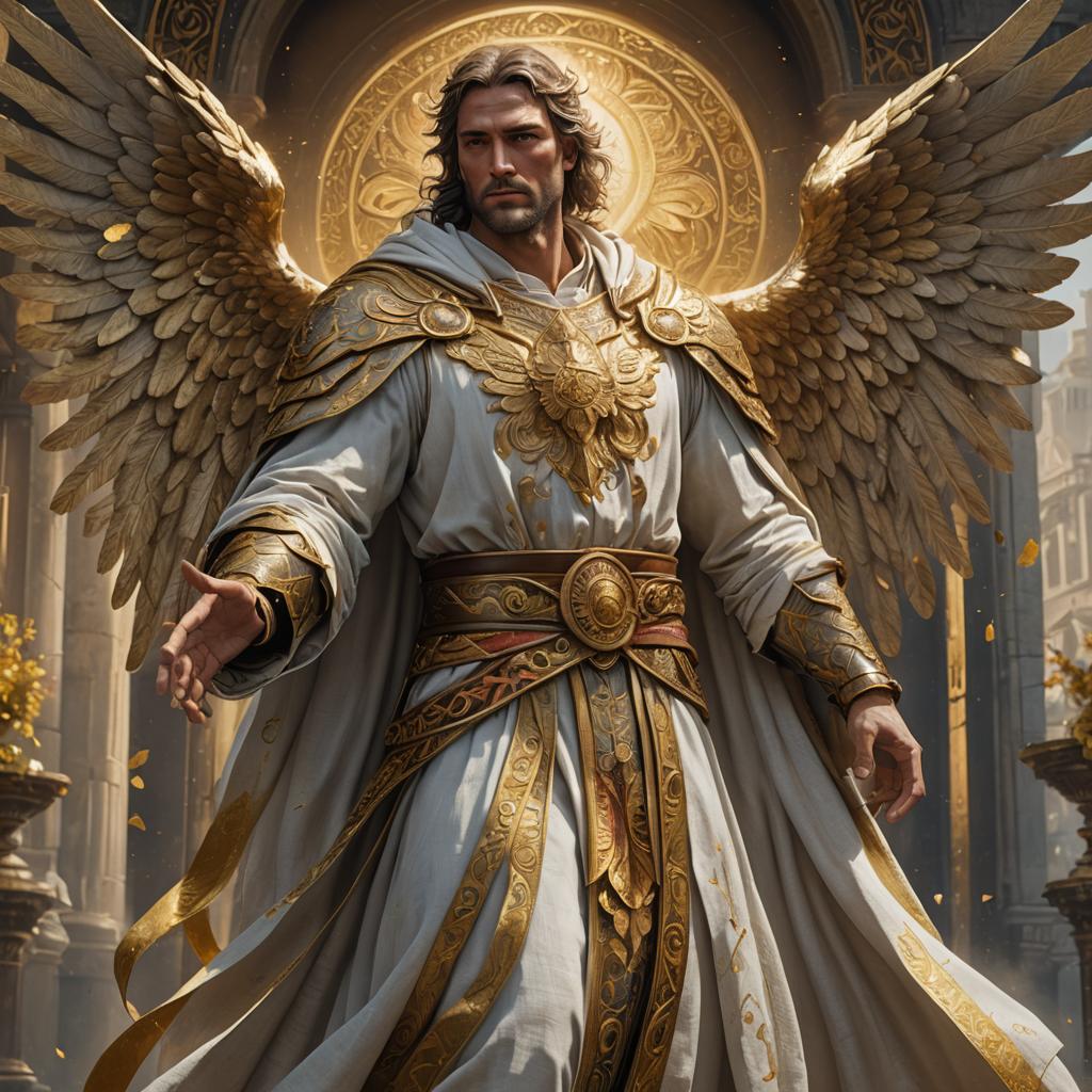 Angel robed in pure bright linen with golden sashe across his chest (15:6)