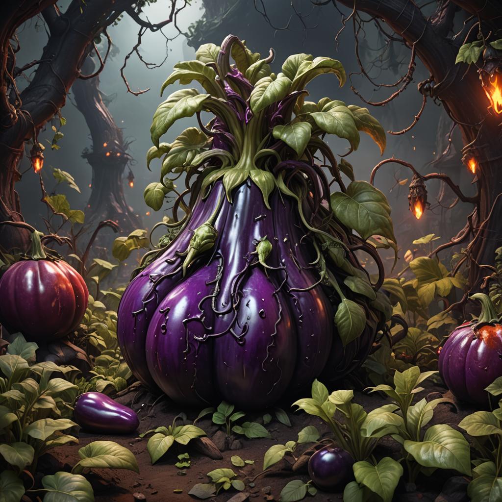 Giant demonic eggplant in the Garden of Hell