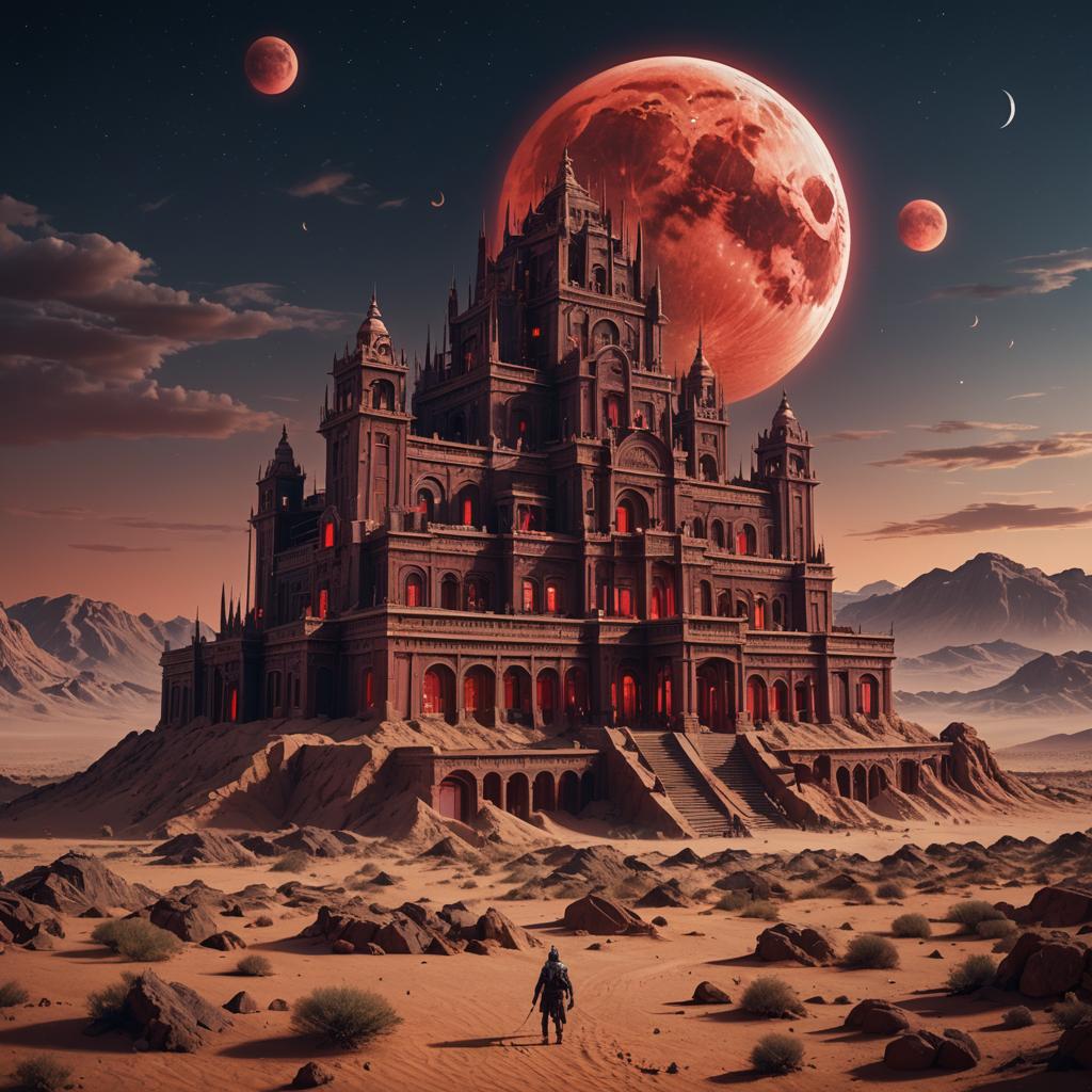 Giant building in the desert under full round blood-red moon.jpg
