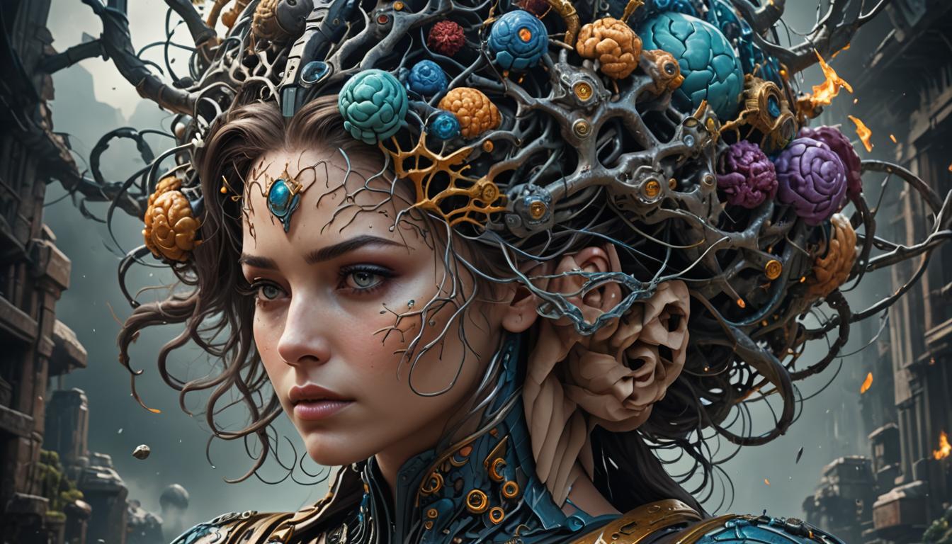 Brain storm inside the head of a beautiful woman