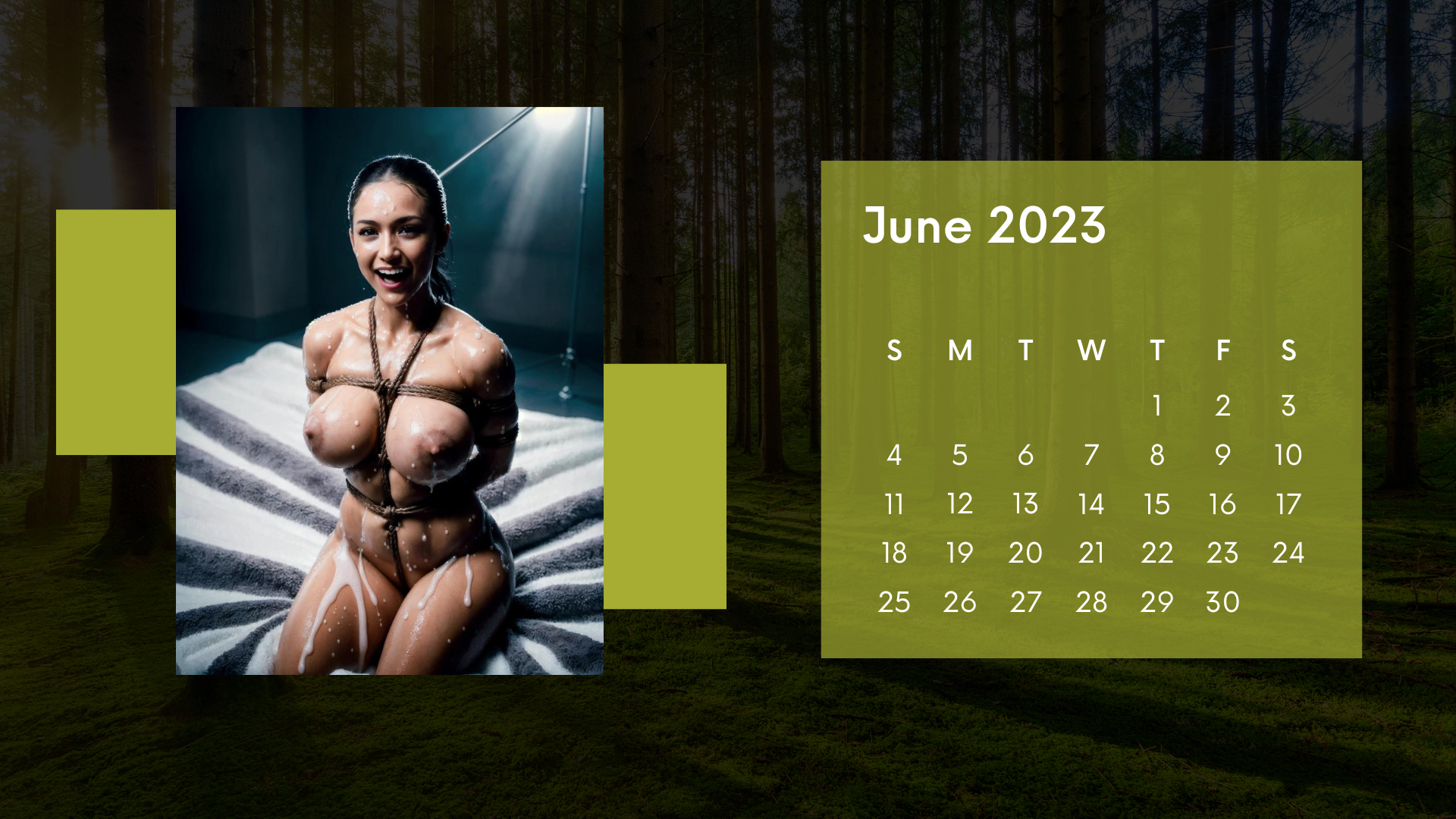 Начну с самого "лёгкого" - с бондажа. Картинки взял с Sharesome (я так и не понял, как там самому генерировать); генератор календаря всё тот же Canva. Как обычно, сначала анимация, потом - страницы календаря.