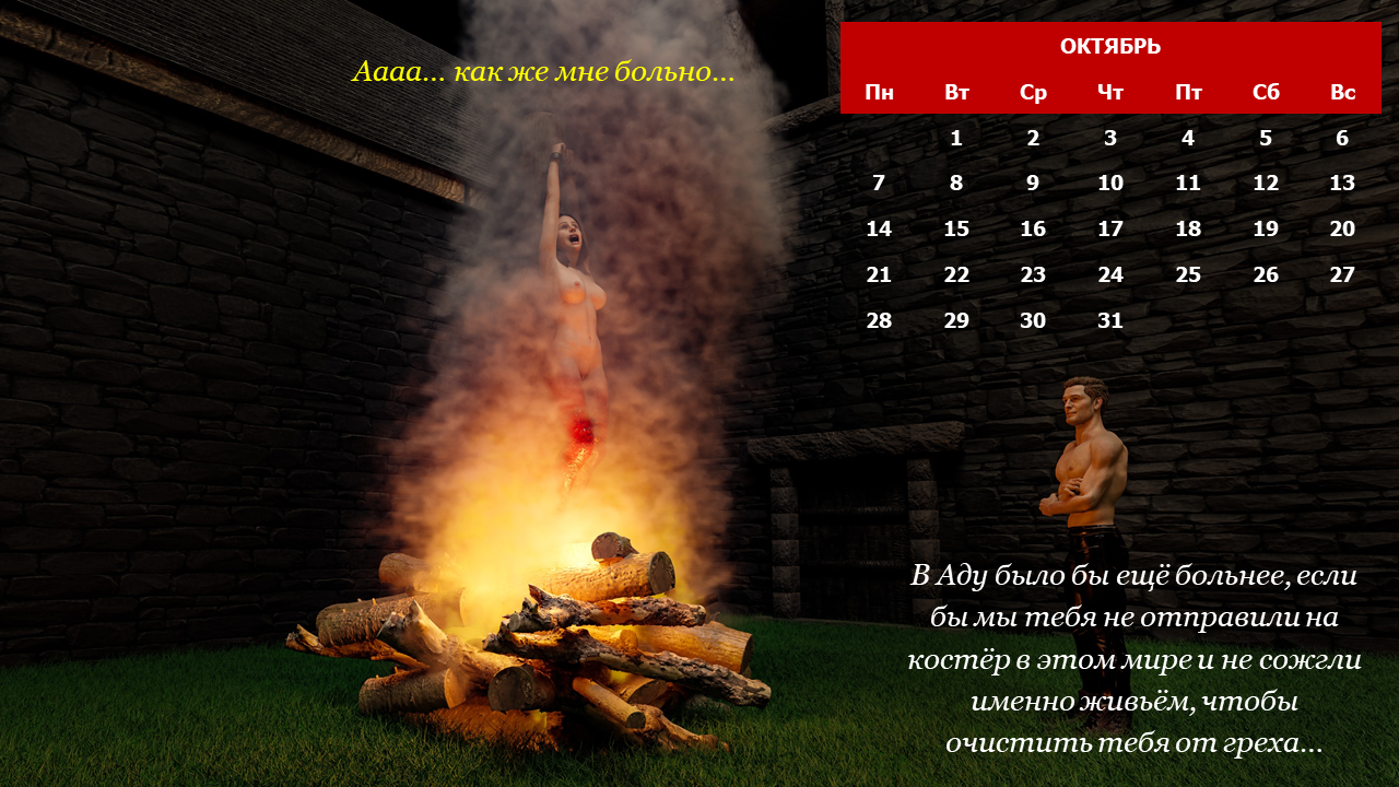 Сожжение ведьмы в замке - календарь 2024 - октябрь