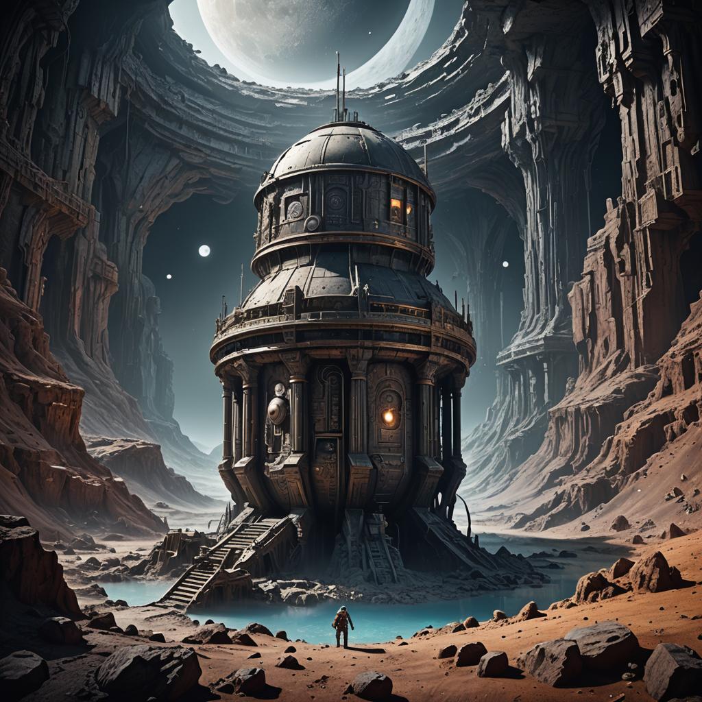 Burning ghost tractor in Arizona desert under full round purple Moon.jpg