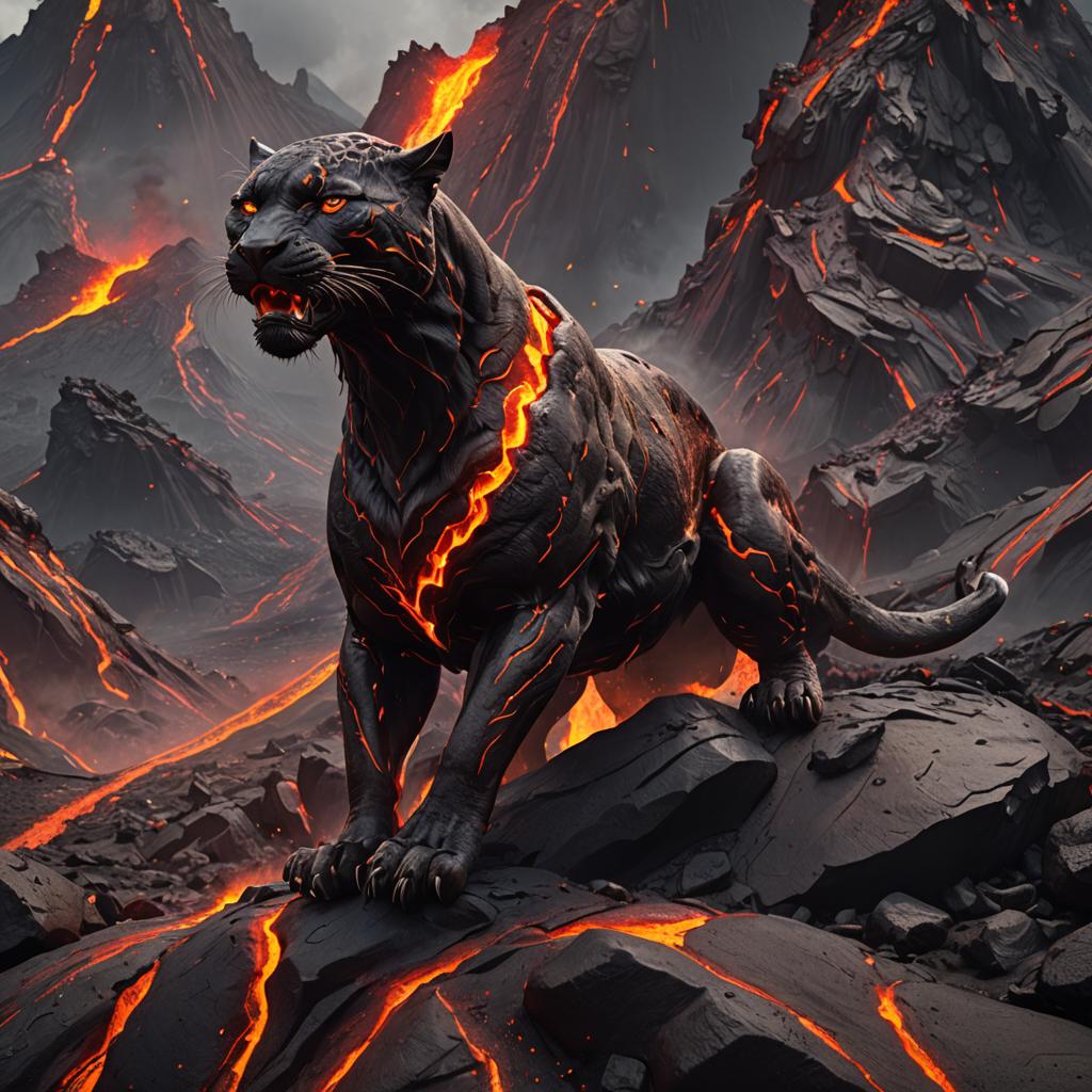 Lava panther on the side of volcano