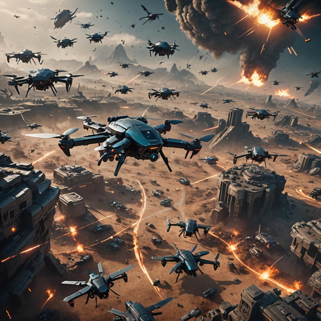 Swarm of small attack drones over the futuristic battlefield.jpg