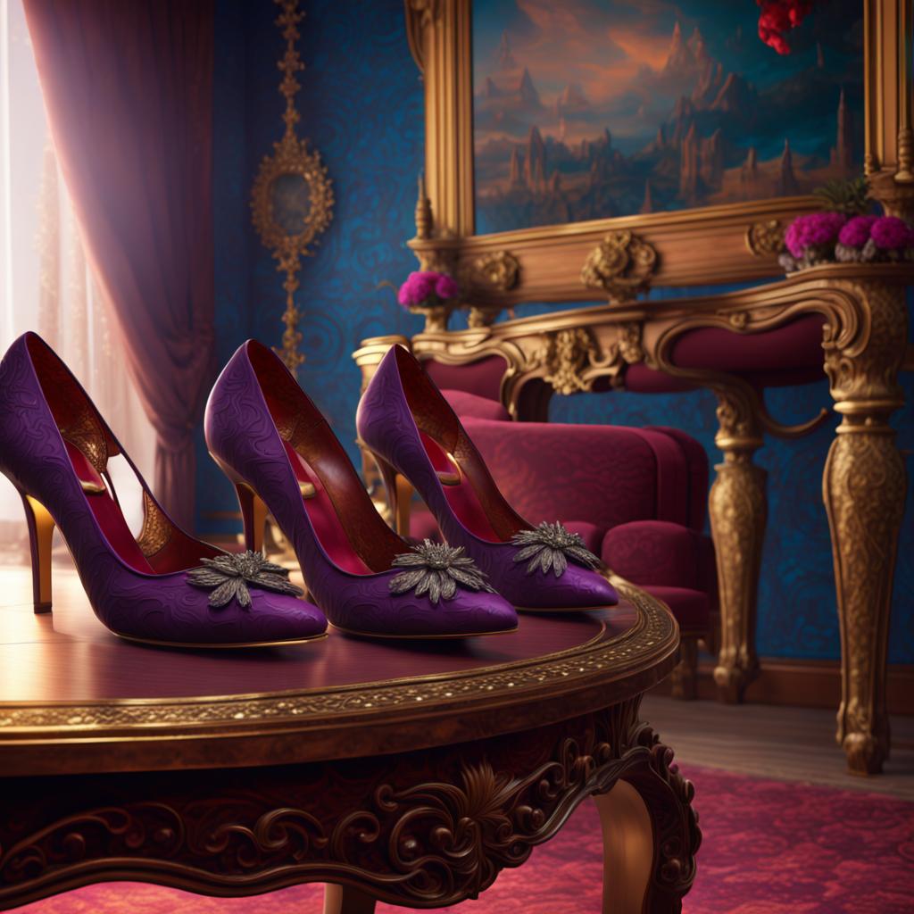 Beautiful ladies' shoes on the table in a royal bedroom - JXL.jpg