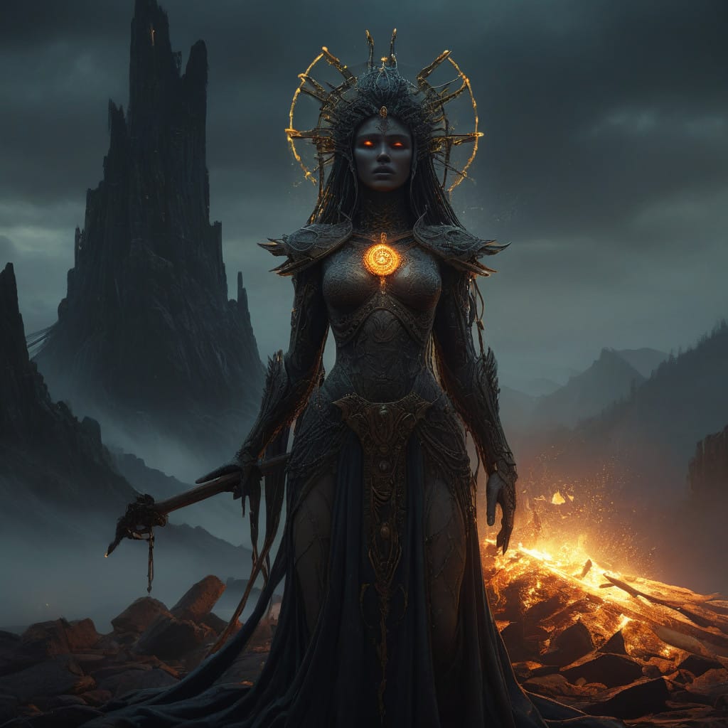 Beautiful woman tied to a stake atop a burning pyre - 7.jpg