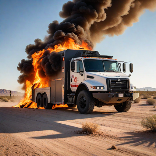 Burning armored truck in Arizona desert.png