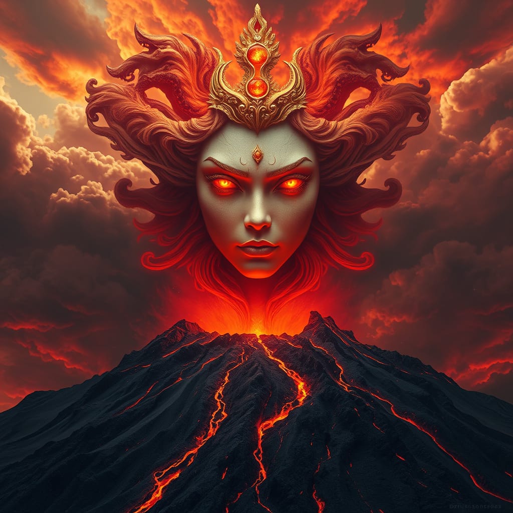 Face of goddess of rage in the sky over vicious volcano.jpg