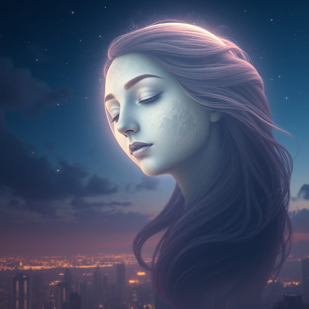 Face of Goddess of the Moon in the sky over the sleeping city.jpg