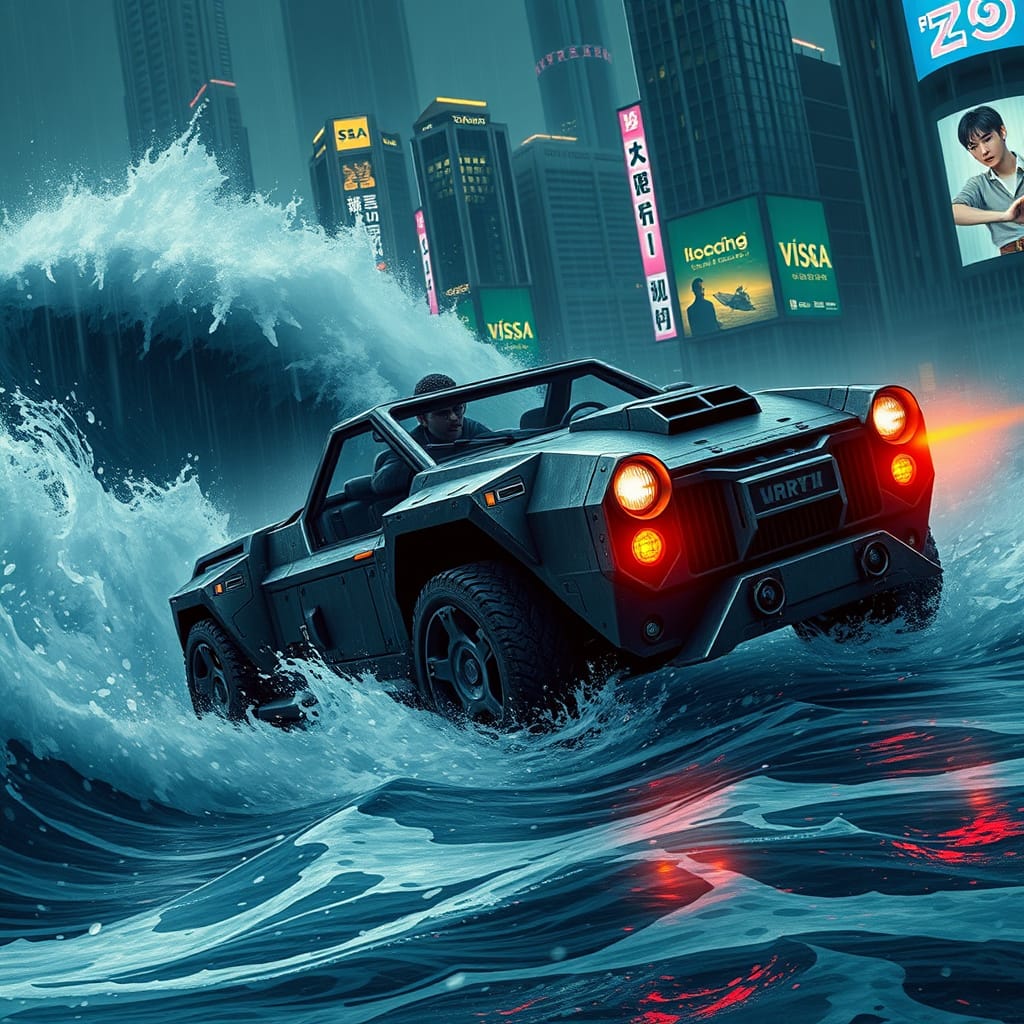 Cyberpunk armoured car driving into vicious tsunami.jpg