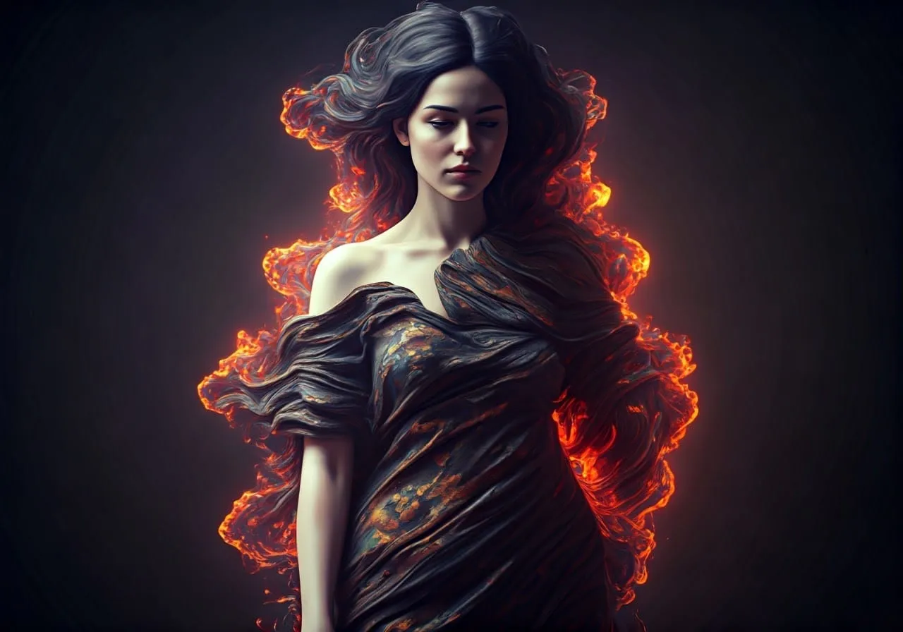 Beautiful naked woman big breasts sitting in a burning pyre - 4.png