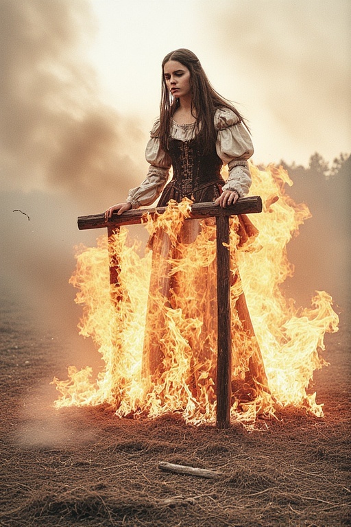 Beautiful medieval woman stands on the burning scaffold - 1.jpg