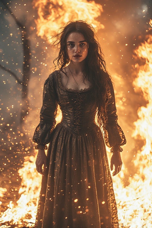 Beautiful medieval woman stands on the burning scaffold - 15.jpg
