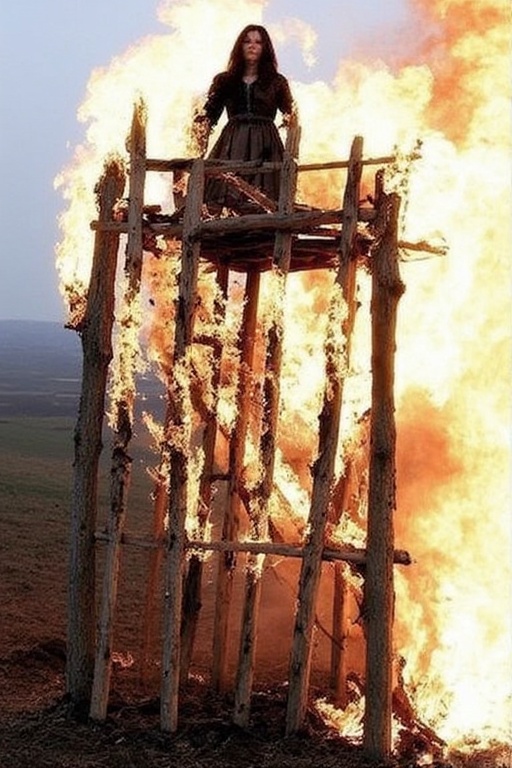 Beautiful medieval woman stands on the burning scaffold - 9.jpg