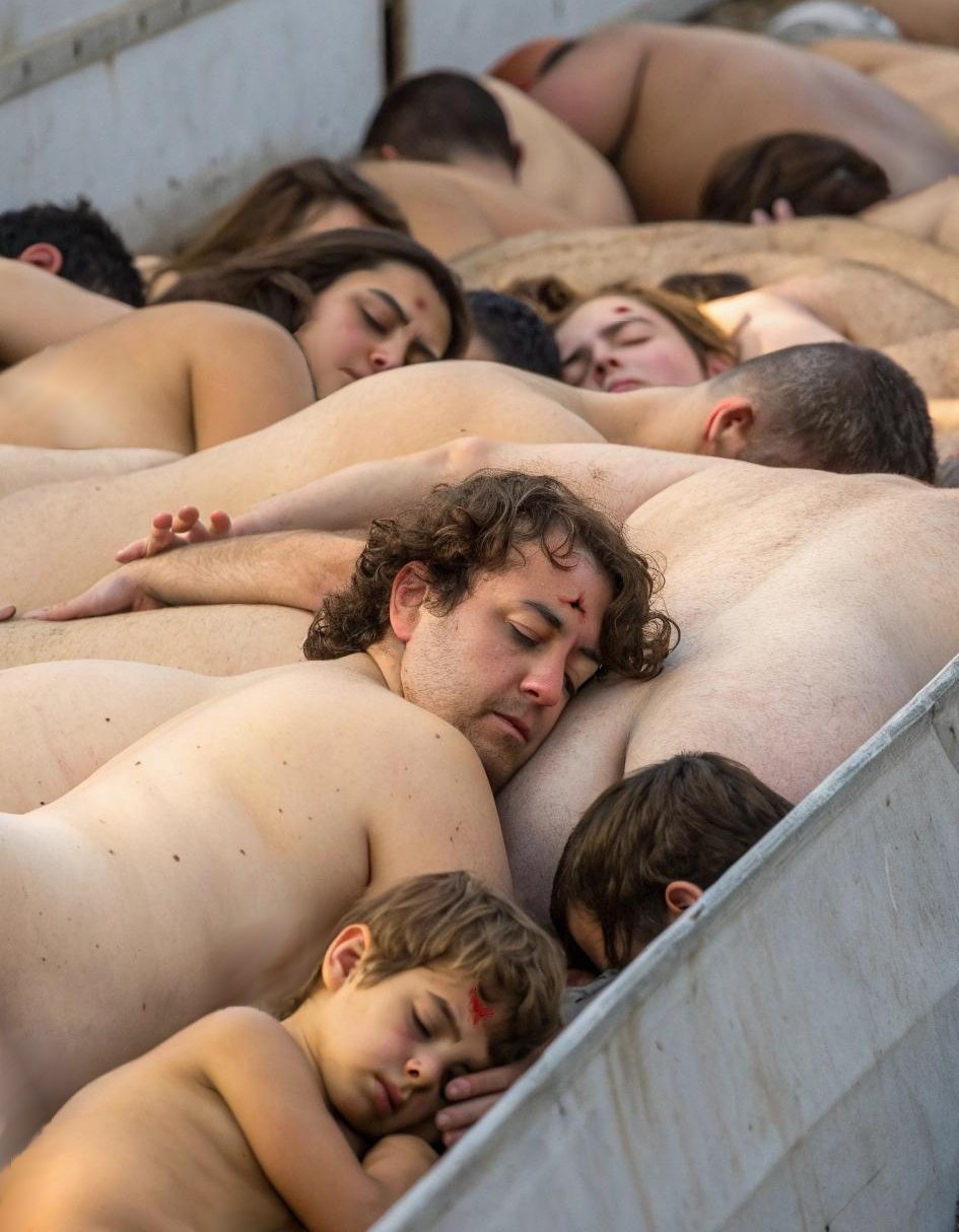 Now 5 km away, she blends among 320 naked corpses...