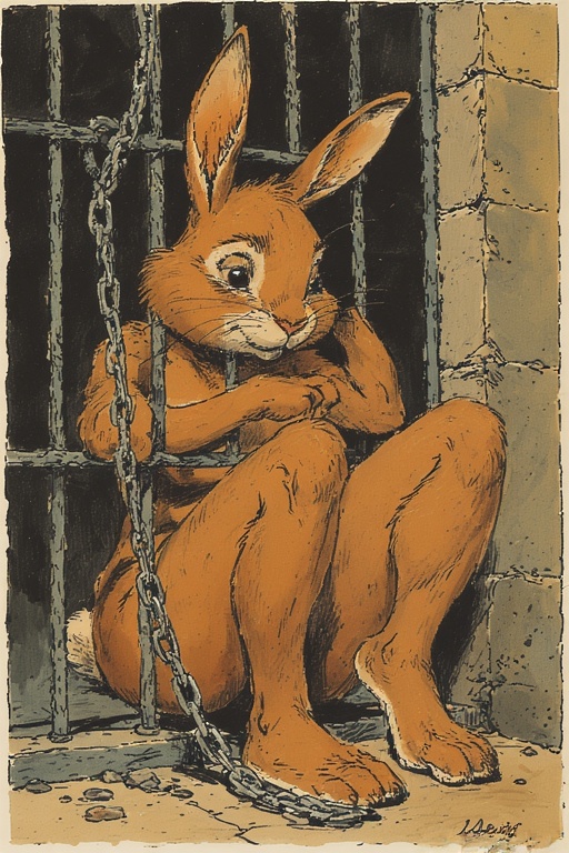 Босые зайки за рещеткой.Стиль винтажный комикс.