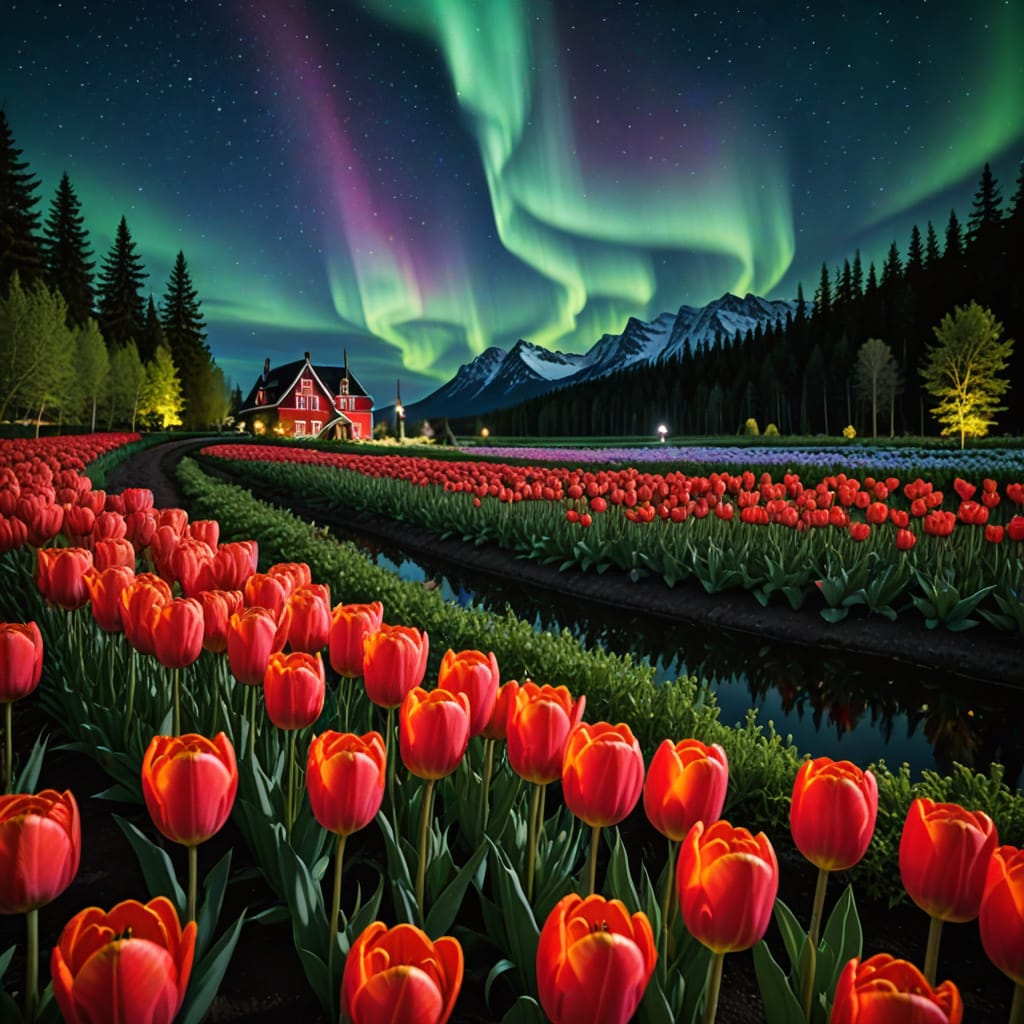 Giant red tulip in magical garden under aurora borealis.jpg