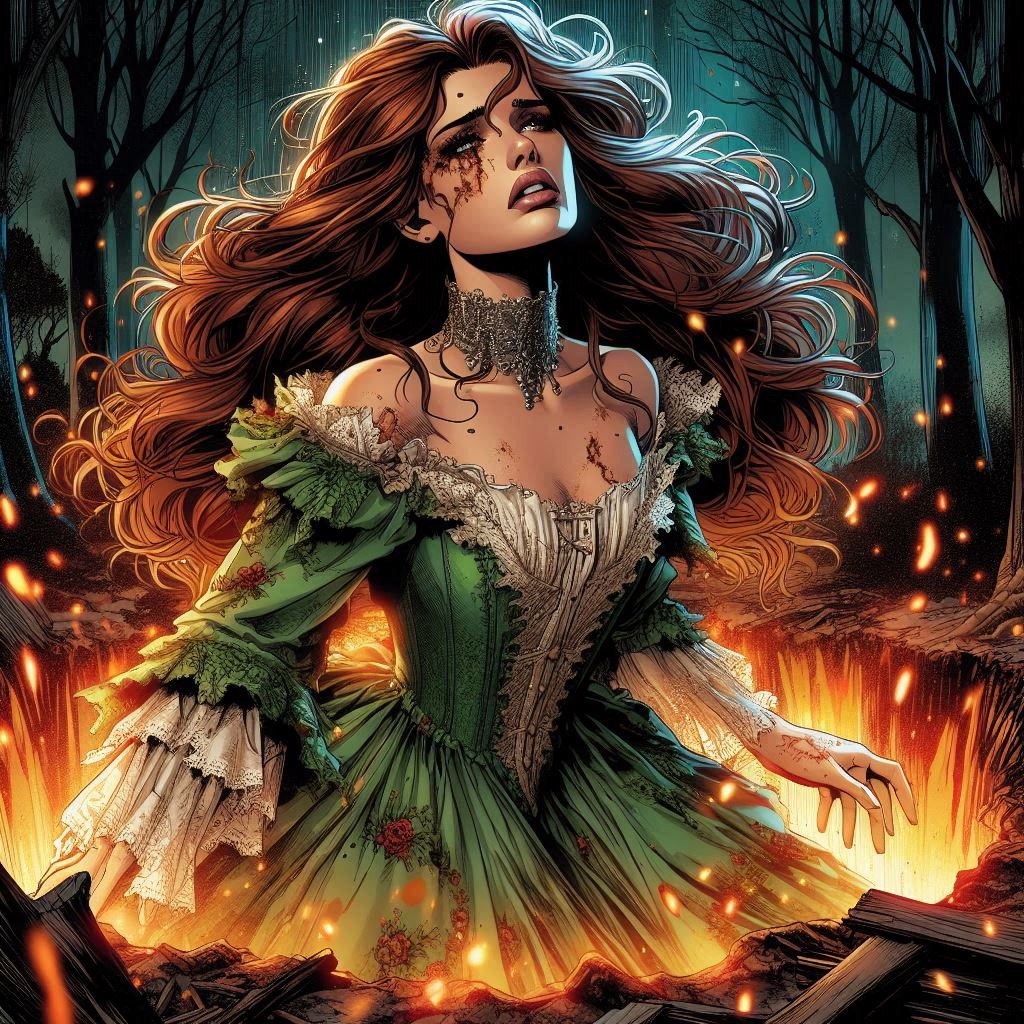 Beautiful woman tied to a stake engulfed with a roaring fire.jpg