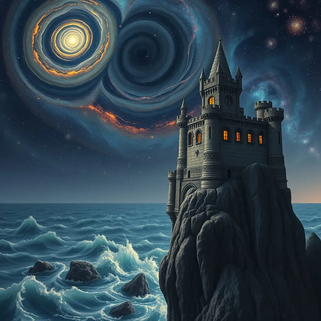 A solitary castle perched precariously on a cliff edge.webp