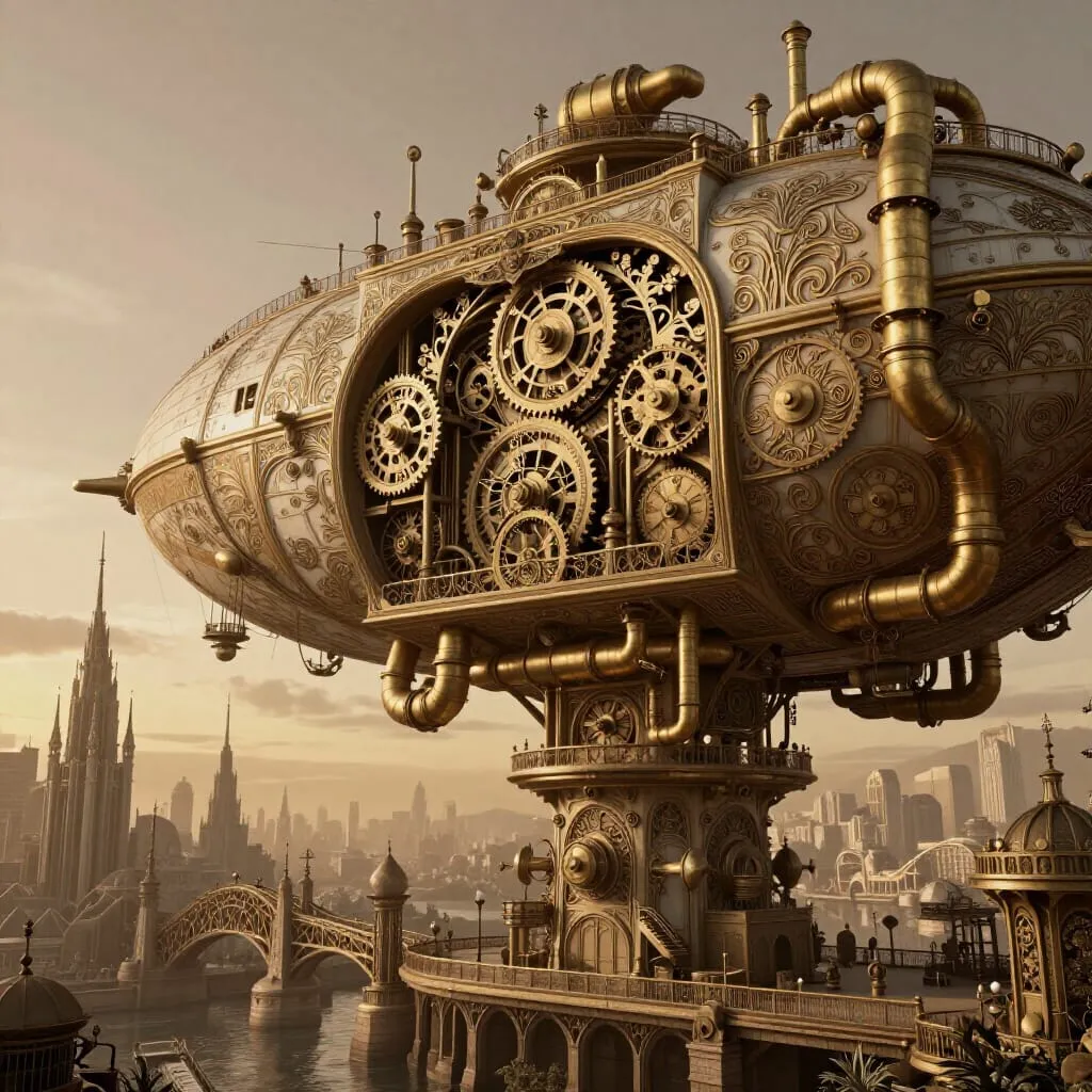 Intricate clockwork mechanisms and brass pipes intertwine with delicate.webp