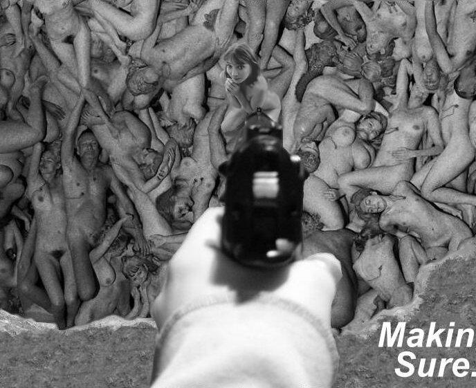 Large groups of naked men and women executed.