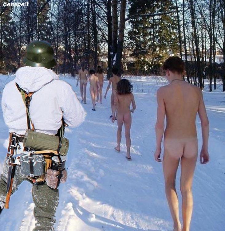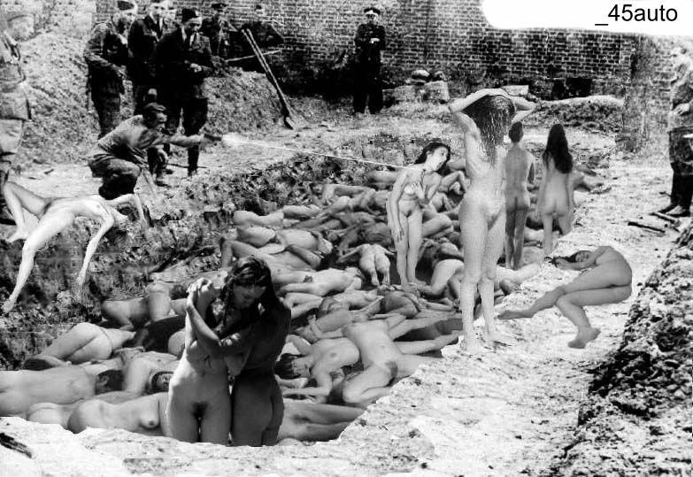 Large groups of naked men and women executed.
