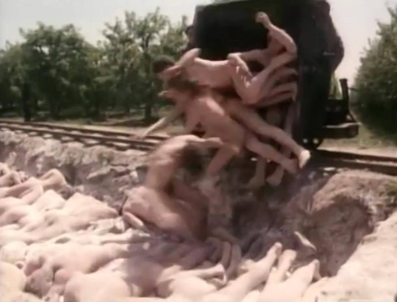 The film cuts off, but we all know she is scheduled for the naked body pile!