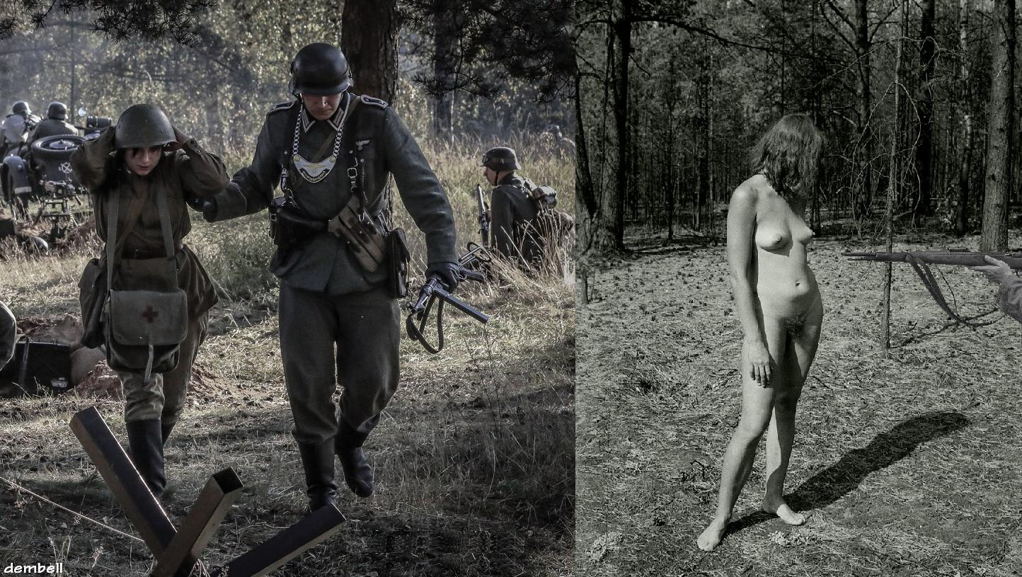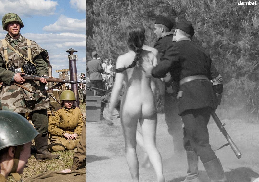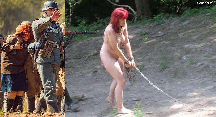Узятих у полон червоних сучок допитують і катують у підвалі комендатури. При цьому вони повністю оголені: