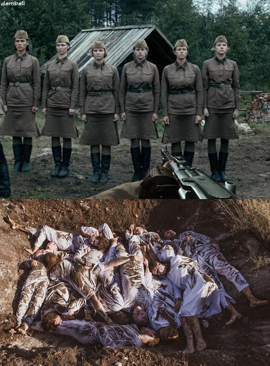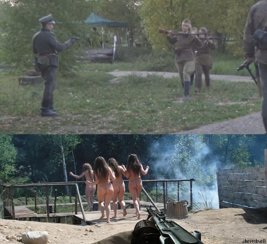 Радянських жінок-військовополонених змушують роздягатися догола перед розстрілом, тих хто відмовляється роздягатися б'ють і зривають одяг силою: