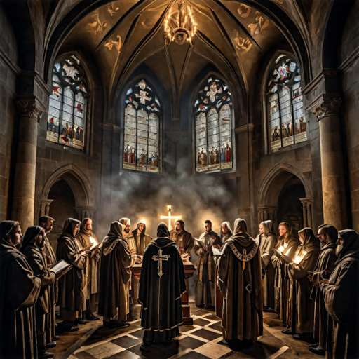 Men standing beside the sea of glass with harps of God in their hands (15:2)
