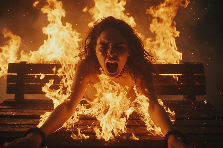 Beautiful naked woman lies chained to a burning bench - 3.jpg