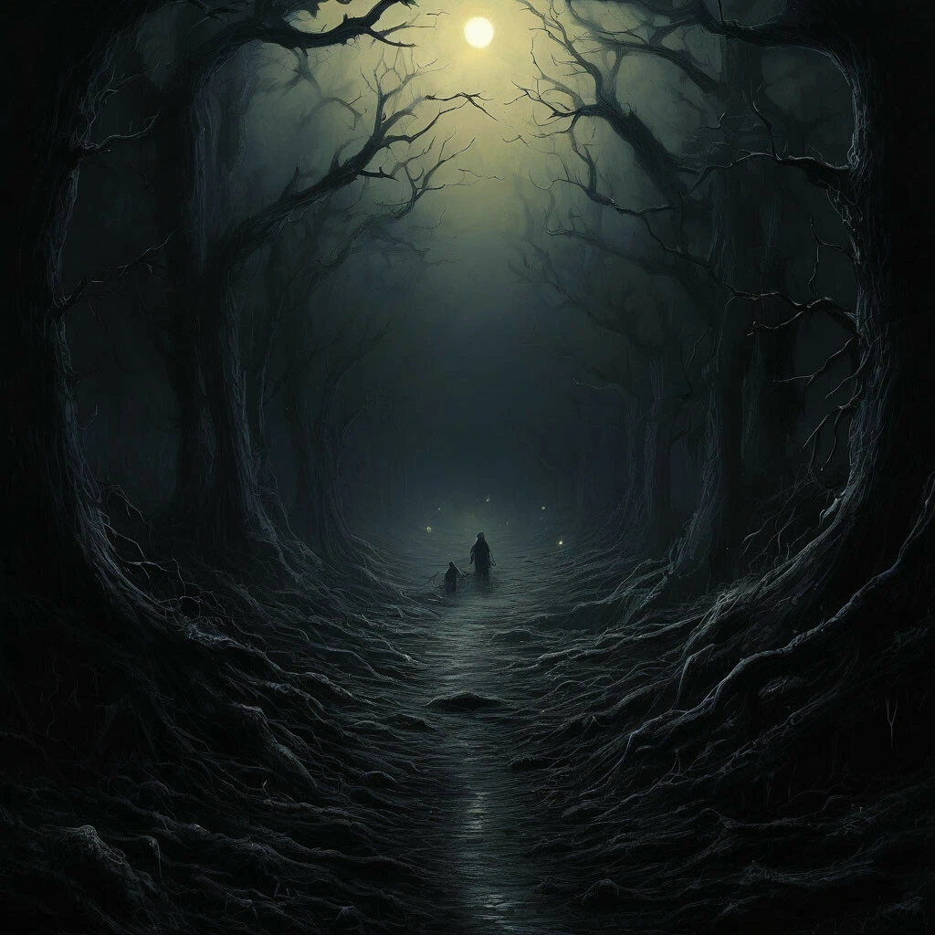 Beautiful humanoid woman in the forest under full round green moon.jpg