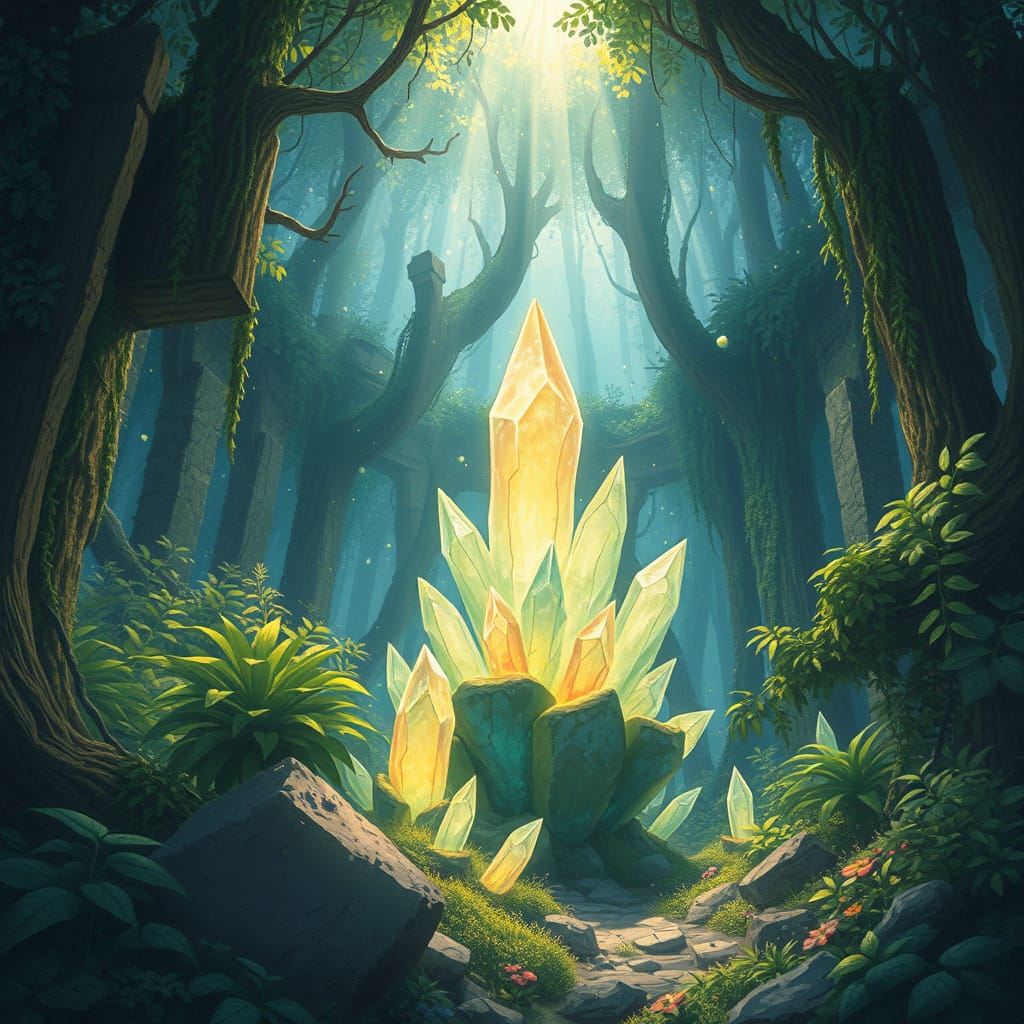 A whimsical illustration of a vibrant, bioluminescent crystal.jpg